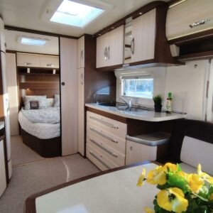 Alde, CD-soitin, Fridge, Cassette WC, Cassette blinds, Roof hatch, Floor heating, Fluid circulation heating, Freezer compartment, Double bed, Sink, Shower, Electric heating cartridge, TV-antenni tai lautasantenni, Support legs