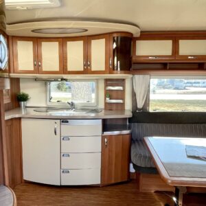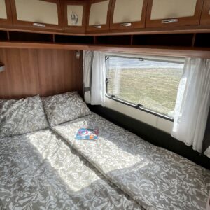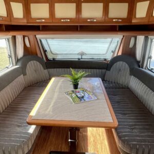 Alde, Sun shade, Bicycle rack, Support legs, Fridge, Cassette WC, Roof hatch, Electric heating cartridge, Fluid circulation heating, Floor heating, Double bed