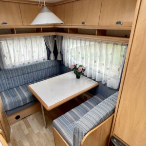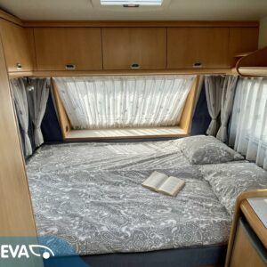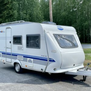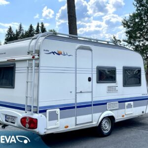 Cassette blinds, Cassette WC, Fridge, Roof hatch, Stove, Double bed, Sink, Freezer compartment, Electric heating cartridge, Trumatic, Support legs, TV-antenni tai lautasantenni, Roof railing/ladder, Hot water boiler