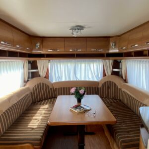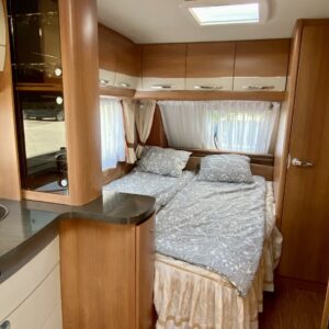 Alde, Solar panel, Fridge, Cassette WC, Cassette blinds, Roof hatch, Stove, Hot water boiler, Sun shade, Fluid circulation heating, Freezer compartment, Double bed, Sink, Shower, Electric heating cartridge, TV-antenni tai lautasantenni, Support legs, Lattialämmitys (sähkö), sähkön ulosotto, Asuinosan hyttysovi/verho