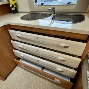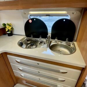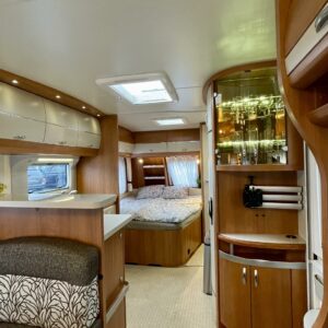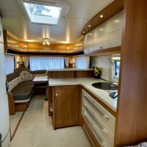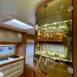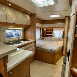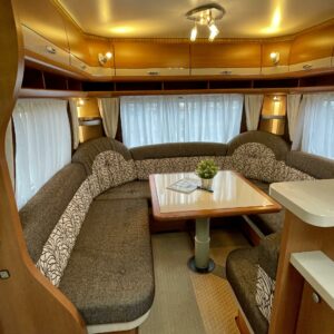 Trumatic- ilmapuhalluslämmitys, Sink, Freezer compartment, Stove, Roof hatch, Cassette blinds, Kasetti- WC, Fridge, Hot water boiler, Double bed, Shower, Support legs, Lattialämmitys (sähkö), Kesärenkaat, sähkön ulosotto, Passenger area carpets