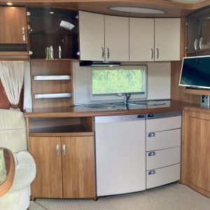 Alde,Ilmastointi aut.,Ilmastointi man.,Jääkaappi,Kasetti WC,Kasettiverhot,Kattoluukku,Keskuslämmitys,Lattialämmitys,Lattiamatot asunto-osassa,Liesi,Lämminvesiboileri,Markiisi,Nestekiertolämmitys,Pakastelokero,Parivuode,Pesuallas,Pyöräteline,Suihku,Sähköpatruuna,Tukijalat,TV-antenni/lautasantenni,soitin