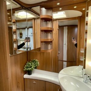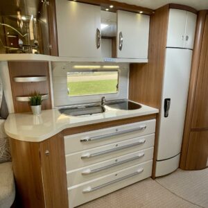 Alde, Fridge, Cassette WC, Cassette blinds, Roof hatch, Floor heating, Passenger area carpets, Stove, Freezer compartment, Double bed, Sink, Support legs, liesituuletin, Hot water boiler, Fluid circulation heating, Electric heating cartridge, Kesärenkaat, 1 x kevytmet.vanteet, kwh-mittari, Saarekevuode, kaasun ulosotto, sähkön ulosotto