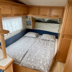 Alde, Fridge, Cassette WC, Stove, Hot water boiler, Microwave oven, Fluid circulation heating, Double bed, Sink, Shower, Electric heating cartridge, TV-antenni tai lautasantenni, Lattialämmitys (sähkö), kwh-mittari, liesituuletin, Cassette blinds, Roof hatch, Floor heating, Freezer compartment, Support legs