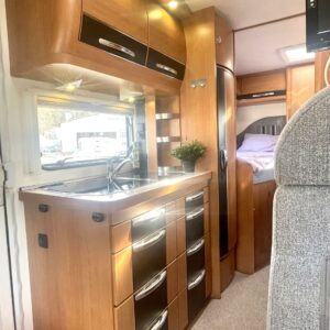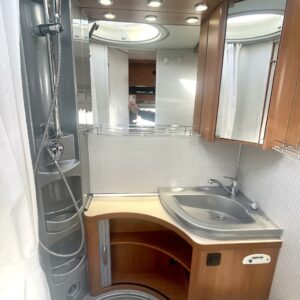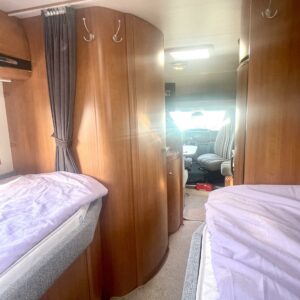 ABS brakes, Airbag, Trip computer, Separate beds, Cab air conditioning, Fridge, Cassette WC, Cassette blinds, Roof hatch, Central heating, Passenger area carpets, Stove, Hot water boiler, Sun shade, Power steering, Freezer compartment, Sink, Bicycle rack, Radio, Electric windows, Electric heating cartridge, Power side mirrors, Electric steps, Trumatic, Turbo, Vakionopeudensäädin