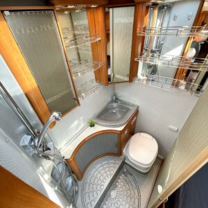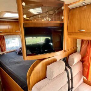 ABS brakes, Airbag, Cab air conditioning, Fridge, Cassette WC, Cassette blinds, Roof railing/ladder, Roof hatch, Keskuslukitus: Ilman kaukosäädintä, Central heating, Stove, Traction control, Hot water boiler, Sun shade, Power steering, Freezer compartment, Double bed, Sink, Pysäköintikamera, Bicycle rack, Radio, Shower, Electric windows, Power side mirrors, Electric steps, Trumatic, Turbo