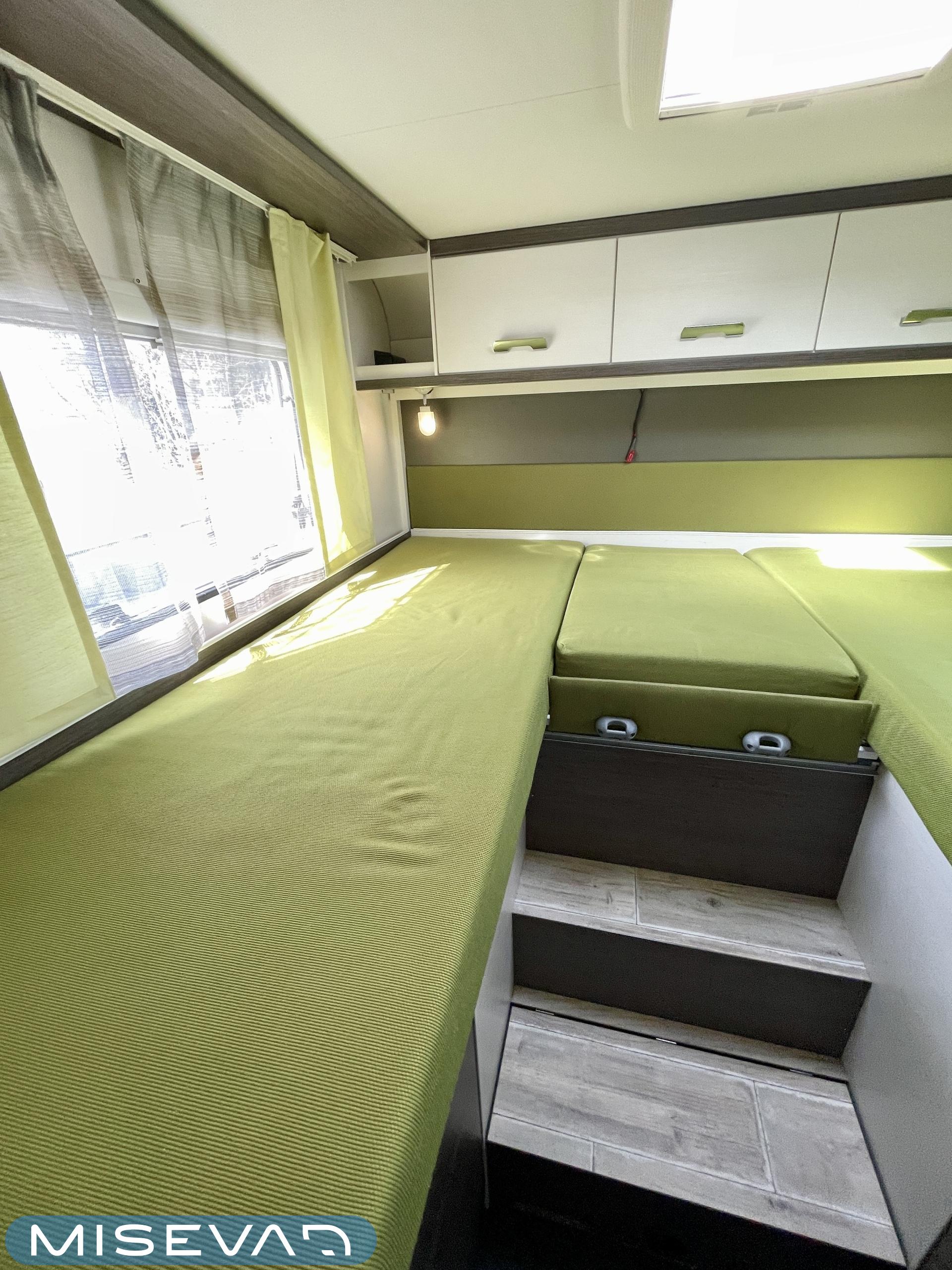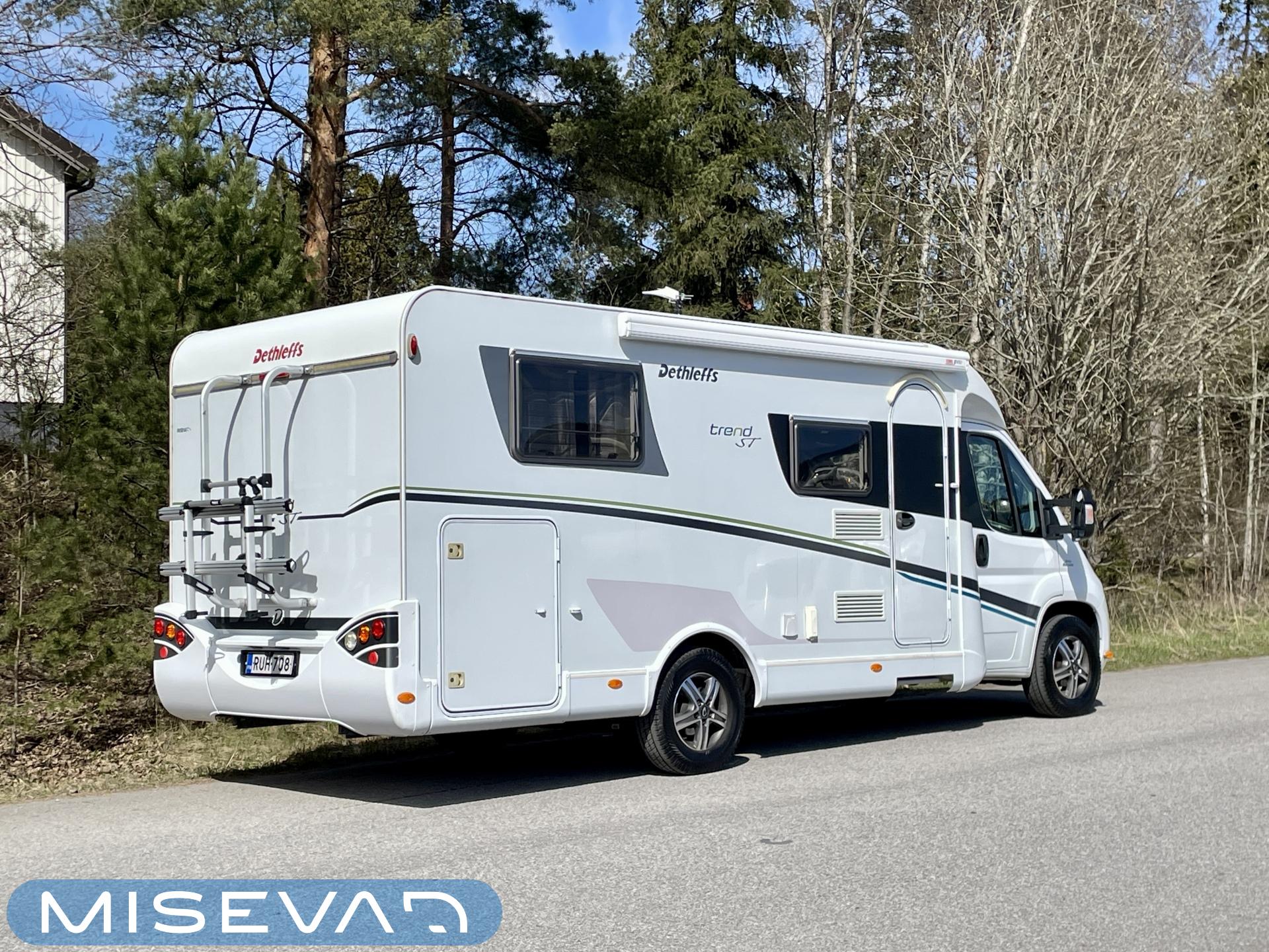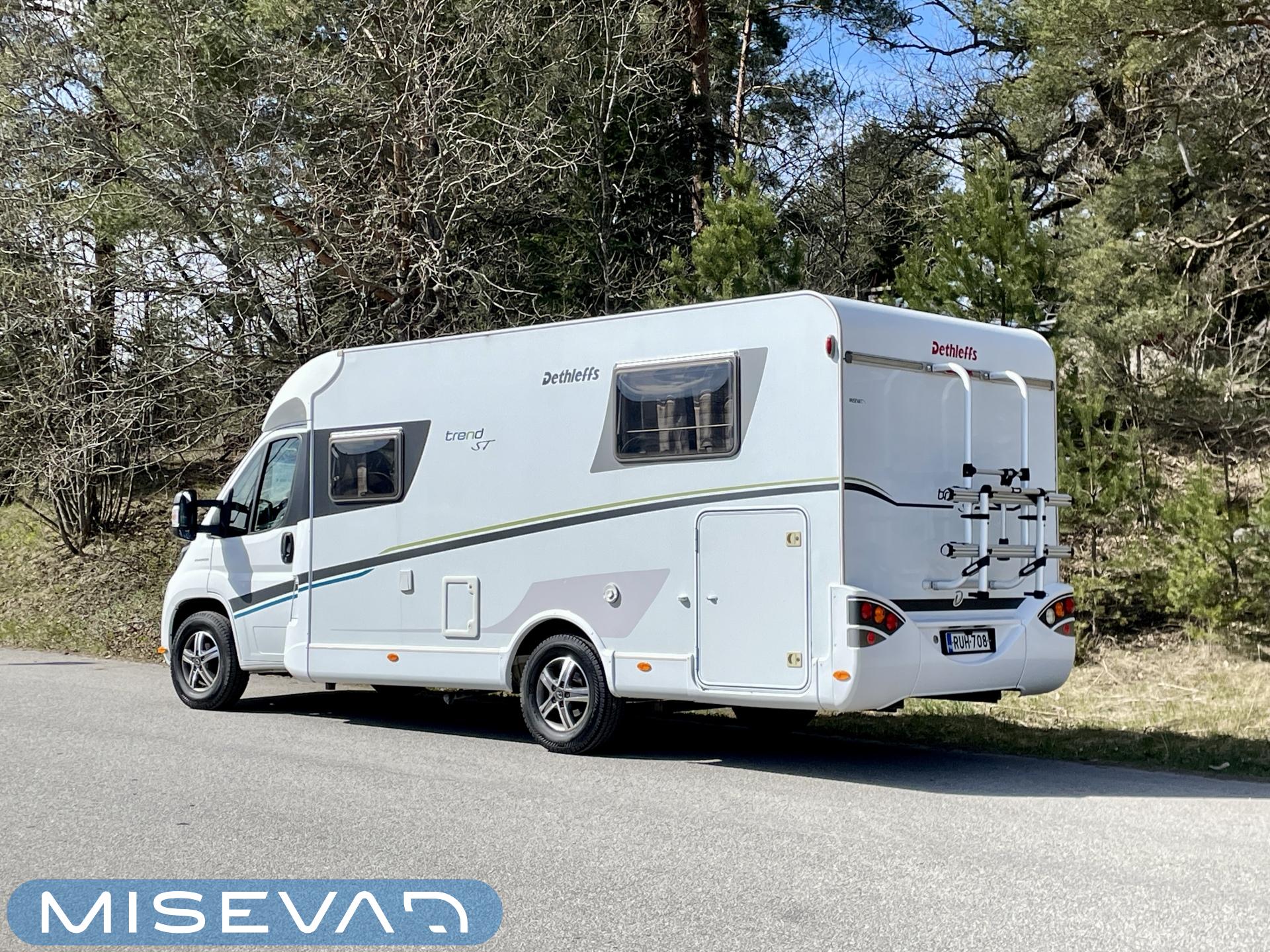 Hot water boiler, Asuintilan ilmastointi, Invertteri, Fridge, Cassette blinds, Kasetti- WC, Stove, Sun shade, Microwave oven, Bicycle rack, Shower, Electric steps, Laskuvuode, Trumatic, Two tyre sets, JP-huollot ok