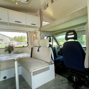 Fridge, Roof hatch, Central heating, Stove, Engine heater, Hot water boiler, Sun shade, Power steering, Freezer compartment, Sink, Bicycle rack, Shower, Electric heating cartridge, Trumatic, Ignition interlock, Double bed, Radio, Turbo, Two tyre sets