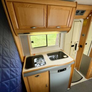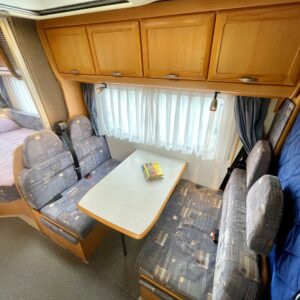 Fridge, Ilmastointi: Automaattinen, Cassette WC, Cassette blinds, Radio, Bicycle rack, Trumatic, Power steering, Sun shade, CD-soitin, Roof hatch, Stove, Traction control, Hot water boiler, Passenger area carpets, Ignition interlock, Central heating, Freezer compartment, Double bed, Sink, Turbo, TV-antenni tai lautasantenni, Pysäköintikamera, Electric steps, Fuel-operated additional heater, Two tyre sets, Vakionopeudensäädin, Shower