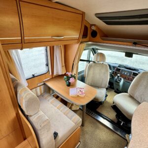 Cassette WC, Cassette blinds, Passenger area carpets, Stove, Engine heater, Hot water boiler, Sun shade, Bicycle rack, Interior plug, Electric windows, Electric heating cartridge, Power side mirrors, Electric steps, Vakionopeudensäädin, ranskalainen vuode, ohjaamon kasettiverhot, pullonvaihtaja, Cab air conditioning, Special wheels, Trumatic, Pysäköintikamera, Fridge, Roof hatch, Double bed, Sink, Shower, Freezer compartment, Fuel-operated additional heater, 1 x kevytmet.vanteet, Kesärenkaat