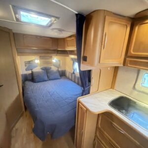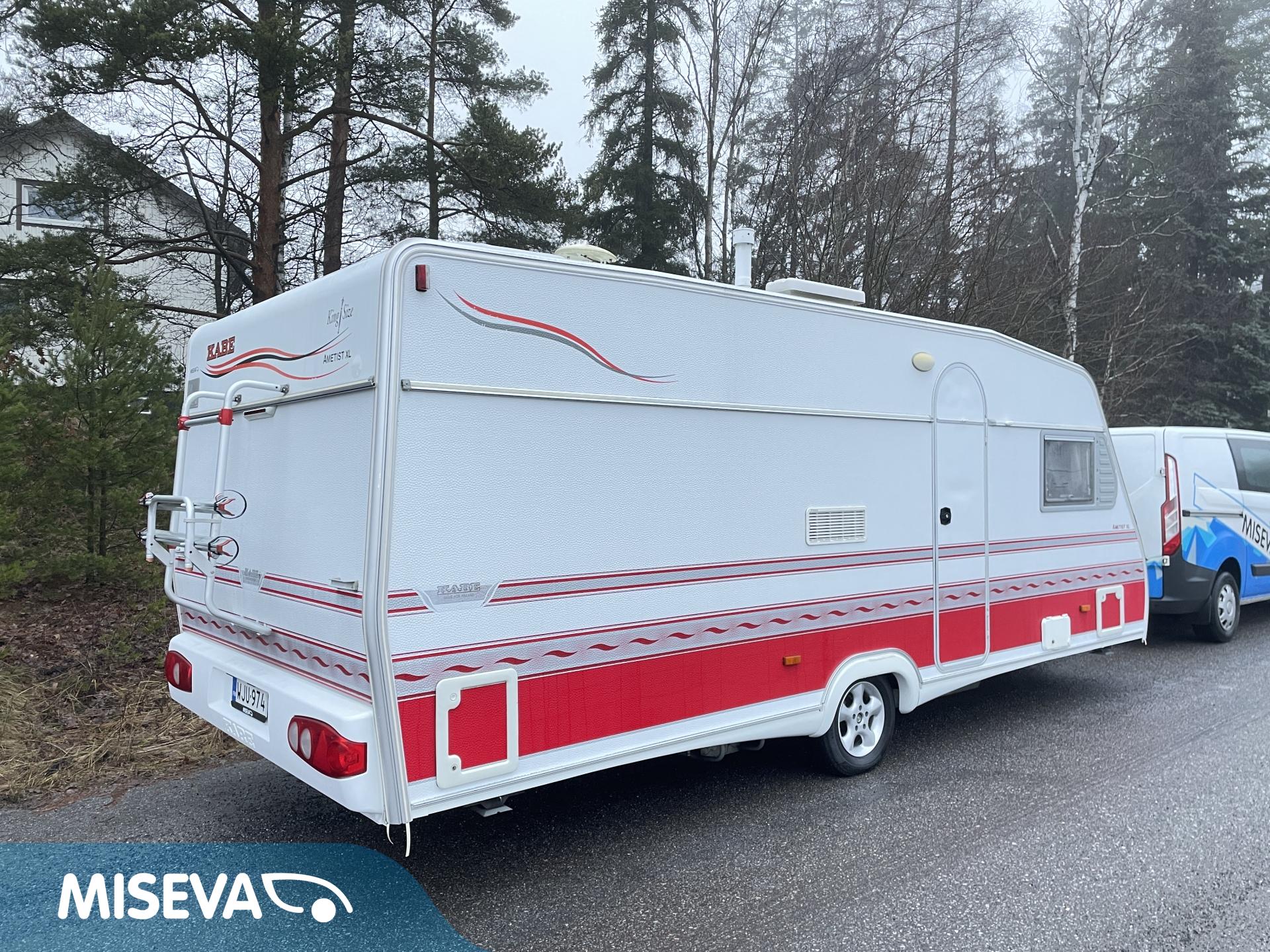 Fridge, Cassette WC, Cassette blinds, Roof hatch, Floor heating, Stove, Hot water boiler, Fluid circulation heating, Double bed, Sink, Bicycle rack, Electric heating cartridge, Alde, Lattialämmitys (nestekierto), kwh-mittari