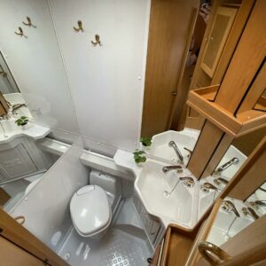 Alde, Special wheels, Fridge, Cassette WC, Cassette blinds, Roof hatch, Central heating, Floor heating, Stove, Hot water boiler, Fluid circulation heating, Freezer compartment, Double bed, Sink, Electric heating cartridge, Support legs