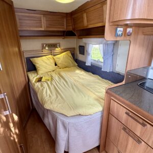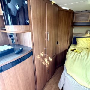 Alde, Cassette blinds, Cassette WC, Fridge, Roof hatch, Floor heating, Stove, Hot water boiler, Sun shade, Double bed, Sink, Freezer compartment, Fluid circulation heating, Shower, Electric heating cartridge, TV-antenni tai lautasantenni, Support legs, Bicycle rack