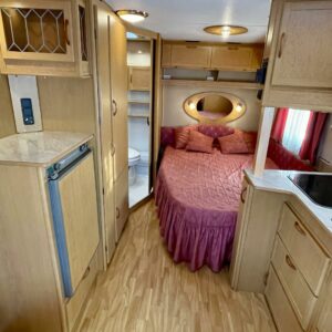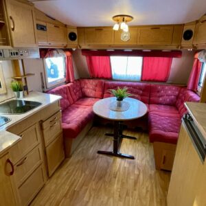 Alde, Fridge, Cassette WC, Cassette blinds, Roof hatch, Floor heating, Stove, Hot water boiler, Fluid circulation heating, Freezer compartment, Double bed, Electric heating cartridge, Support legs, TV-antenni tai lautasantenni, Bicycle rack