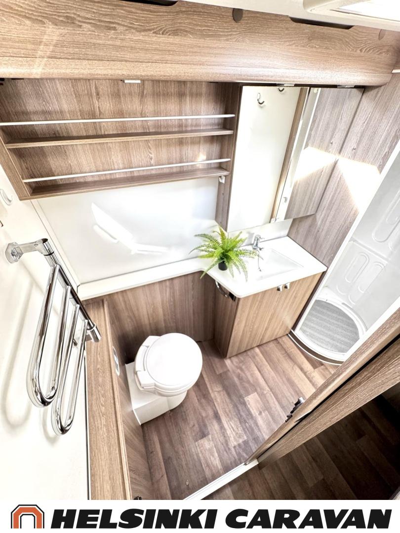 ESC system, Alde, Fluid circulation heating, Floor heating, Electric heating cartridge, Special wheels, Insulated grey water tank, Ilmastointi: Manuaalinen, Fridge, Gas oven, Cassette WC, Cassette blinds, Roof hatch, Stove, Microwave oven, Leather interior, Freezer compartment, Double bed, Radio, Support legs, Bluetooth, Shower, Multimediakeskus, Telttapalvelurasia, kwh-mittari, pullonvaihtaja