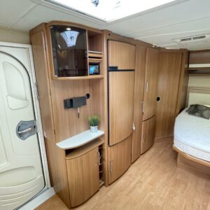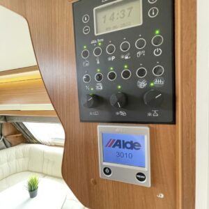 Alde, Special wheels, Front tent, Fridge, Gas oven, Cassette WC, Cassette blinds, Roof hatch, Central heating, Floor heating, Stove, Hot water boiler, Leather interior, Fluid circulation heating, Double bed, Sink, Stereo system, Shower, Electric heating cartridge, Support legs, TV antenna/satellite dish