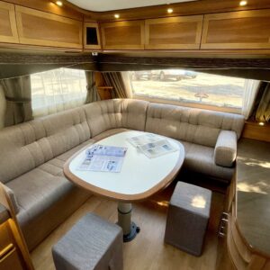 Alde, Special wheels, Fridge, Gas oven, Cassette WC, Cassette blinds, Roof hatch, Central heating, Stove, Hot water boiler, Fluid circulation heating, Freezer compartment, Double bed, Sink, Stereo system, Shower, Electric heating cartridge, Support legs, TV antenna/satellite dish, Lattialämmitys (nestekierto), 1 x kevytmet.vanteet, kwh-mittari, kaasun ulosotto, sähkön ulosotto