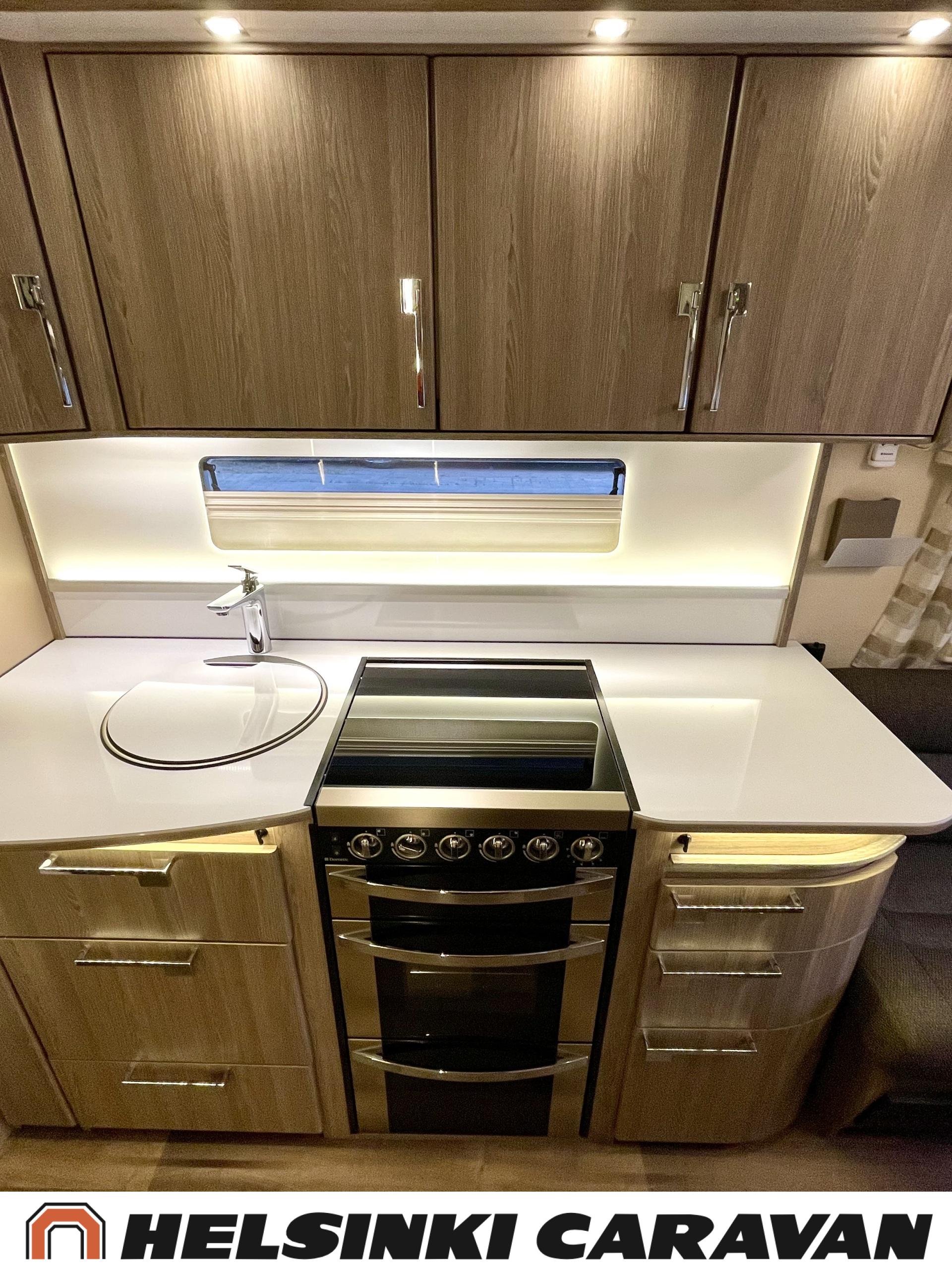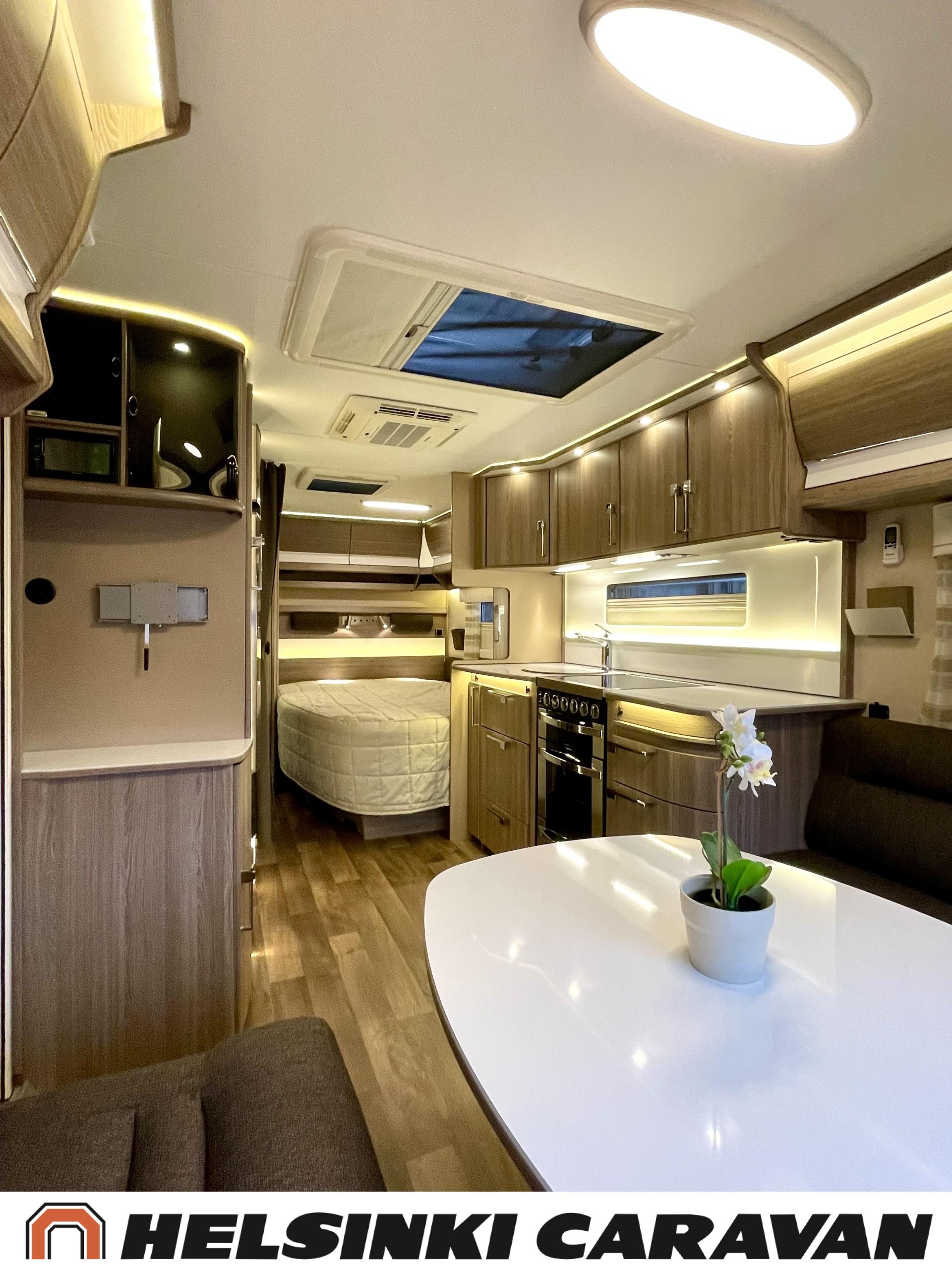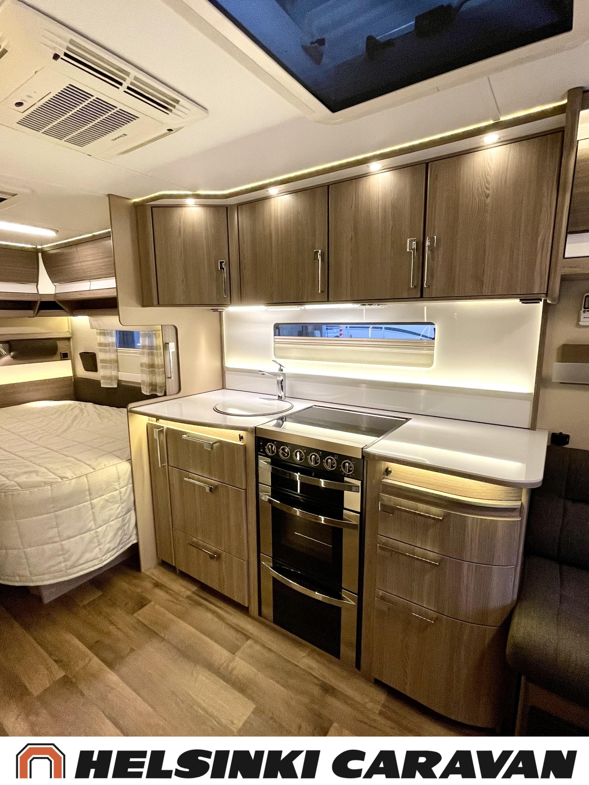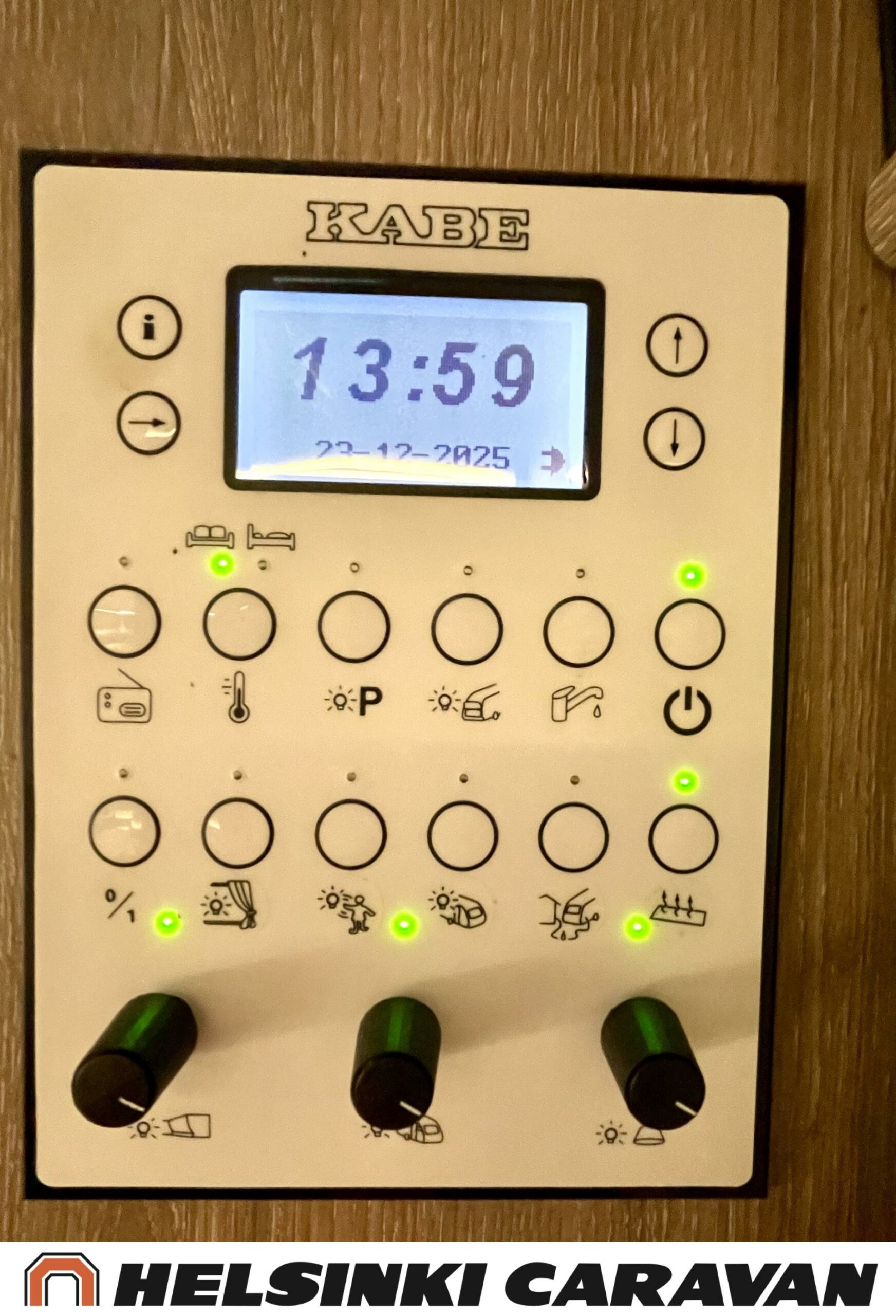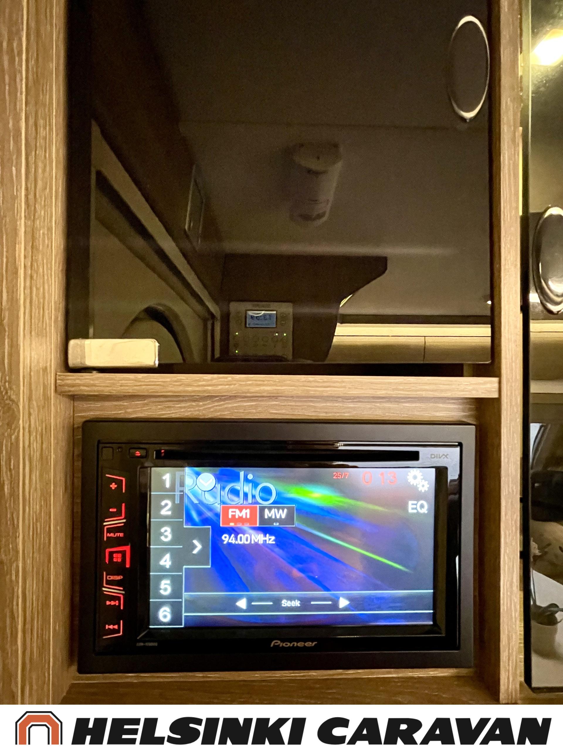 Alde, Bluetooth, CD-soitin, Special wheels, Insulated grey water tank, Fridge, Gas oven, Cassette WC, Cassette blinds, Roof hatch, Floor heating, Stove, Hot water boiler, MP3, Freezer compartment, Fluid circulation heating, Double bed, Sink, Radio, Shower, Electric heating cartridge, TV-antenni tai lautasantenni, Lattialämmitys (nestekierto), 1 x kevytmet.vanteet, kwh-mittari, liesituuletin, kaasun ulosotto, televisioteline, sähkön ulosotto, suihkun ulosotto, Asuinosan hyttysovi/verho, ATC (AL-KO vaunun vakautusjärjestelmä), Ilmastointi (asuintila)