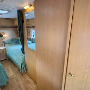 Support legs, Electric heating cartridge, Shower, Sink, Freezer compartment, Hot water boiler, Stove, Lattialämmitys- nestekiertoinen, Roof hatch, Cassette blinds, Kasetti- WC, Insulated grey water tank, Separate beds, Alde- nestekiertoinen keskuslämmitys, Sähkön ulosotto----------------------------------