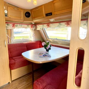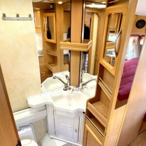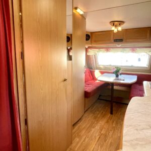 Alde, Separate beds, Hardwood decoration, Fridge, Cassette WC, Roof hatch, Stove, Hot water boiler, Fluid circulation heating, Bicycle rack, Radio, Electric heating cartridge, TV-antenni tai lautasantenni, Support legs, Cassette blinds, Floor heating, Freezer compartment, Sink