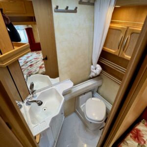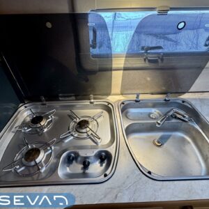 Alde, Cassette blinds, Cassette WC, Fridge, Ilmastointi: Automaattinen, Roof hatch, Floor heating, Stove, Hot water boiler, Fluid circulation heating, Freezer compartment, Double bed, Sink, Bicycle rack, Electric heating cartridge, Support legs