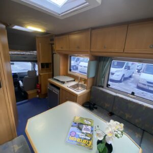 Trumatic- ilmapuhalluslämmitys, Sink, Stove, Roof hatch, Kasetti- WC, Fridge, Airbag, Cassette WC, Cassette blinds, Roof railing/ladder, Central heating, Hot water boiler, Sun shade, Power steering, Freezer compartment, Radio, Bicycle rack, Shower, Electric windows, Vakionopeudensäädin, Towing hook, Kesärenkaat