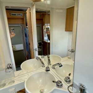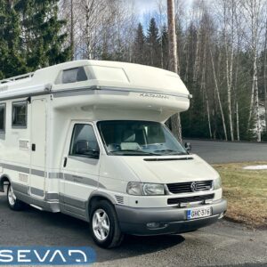 CD-soitin, Cab air conditioning, Fridge, Cassette WC, Cassette blinds, Roof hatch, Stove, Power steering, Freezer compartment, Sink, Radio, Shower, Electric steps, Vakionopeudensäädin, Sun shade, Engine heater, Trumatic, Special wheels, Roof railing/ladder, Central heating, Hot water boiler, Double bed, Bicycle rack, Electric windows, Power side mirrors, Towing hook, JP-huollot ok, Kesärenkaat