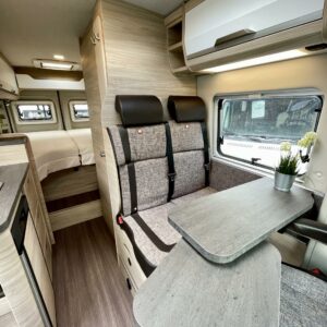 Truma, ABS brakes, Airbag, Solar panel, Special wheels, Insulated grey water tank, Fridge, Two tyre sets, Cassette WC, Cassette blinds, Roof hatch, Keskuslukitus: Kaukosäätöinen, Ignition interlock, Stove, Hot water boiler, Sun shade, Navigator, Power steering, Freezer compartment, Sink, Pysäköintikamera, Bicycle rack, Radio, Shower, Electric windows, Power side mirrors, Electric steps, Turbo, Vakionopeudensäädin, Ilmastointi (ohjaamo), Tupla-akut, ohjaamon kasettiverhot, Multimedialaite (sis. p-kamera, navi, Player, bluetooth, handsfree), Asuinosan hyttysovi/verho