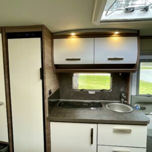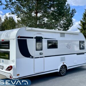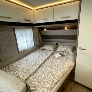 Fridge, Cassette WC, Cassette blinds, Roof hatch, Sun shade, Support legs, Stove, Trumatic, Electric heating cartridge, Shower, Freezer compartment, Double bed, Sink, Bunk bed, Hot water boiler