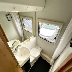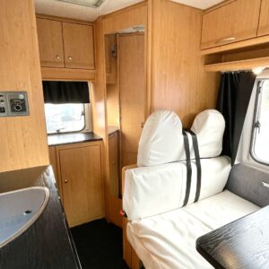 Truma, Fridge, Two tyre sets, Cassette WC, Cassette blinds, Roof hatch, Stove, Hot water boiler, Sun shade, Power steering, Freezer compartment, Sink, Bicycle rack, Radio, Electric windows, Power side mirrors, Turbo, kwh-mittari