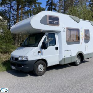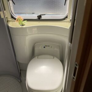 Fridge, Cassette WC, Cassette blinds, Stove, Hot water boiler, Sun shade, Double bed, Bicycle rack, Stereo system, Shower, Trumatic