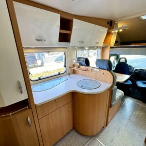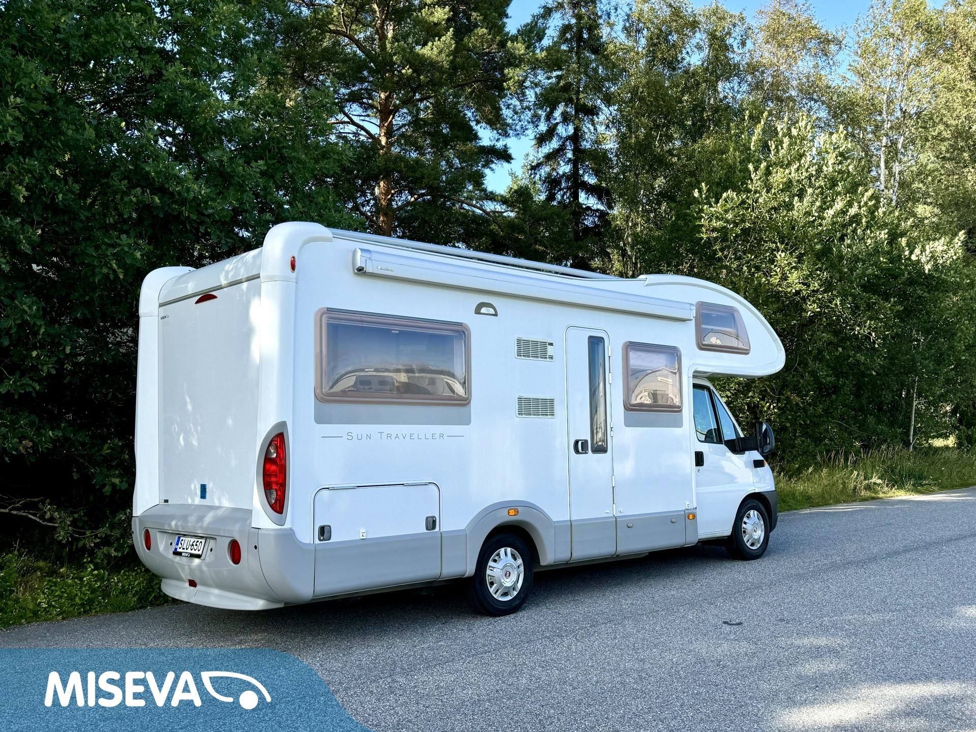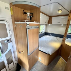Fridge, Two tyre sets, Cassette WC, Cassette blinds, Roof hatch, Central heating, Ignition interlock, Stove, Hot water boiler, Sun shade, Power steering, Freezer compartment, Double bed, Radio, Shower, Electric heating cartridge, Trumatic, Double bottom, Turbo, Ilmastointi (ohjaamo), televisioteline, ohjaamon kasettiverhot