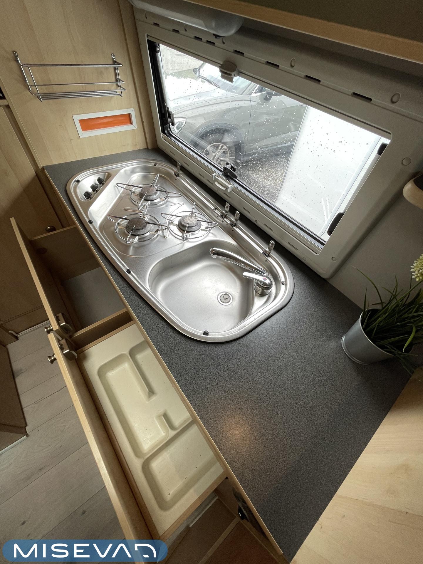 ABS brakes, Airbag, Solar panel, Special wheels, CD-soitin, Service history, Cab air conditioning, Fridge, Cassette WC, Cassette blinds, Roof railing/ladder, Ignition interlock, Stove, Hot water boiler, Bicycle rack, Radio, Power steering, Freezer compartment, Double bed, Trumatic, Turbo, Vakionopeudensäädin, Sink, Electric steps, Navigator, Towing hook, Electric windows, Polkupyöräteline, Invertteri, laskuvuode