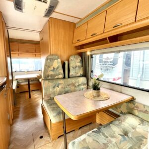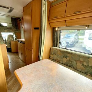 Primus Aquaflex nestekeskuslämpö, CD-soitin, Insulated grey water tank, Fridge, Cassette WC, Cassette blinds, Roof hatch, Central heating, Stove, Engine heater, Hot water boiler, Sun shade, Fluid circulation heating, Power steering, Freezer compartment, Sink, Bicycle rack, Electric heating cartridge, Electric steps, Turbo, harmaavesisäiliön lämmitys, Ilmastointi (asuintila)