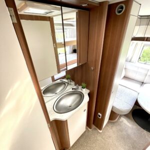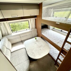 Alde, Fridge, Gas oven, Cassette WC, Cassette blinds, Roof hatch, Bunk bed, Stove, Hot water boiler, Fluid circulation heating, Freezer compartment, Double bed, Sink, Shower, Electric heating cartridge, Support legs, TV-antenni tai lautasantenni, Ilmastointi: Manuaalinen