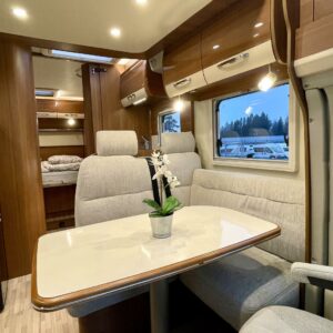 Two tyre sets, Sun shade, Airbag, ABS brakes, ESC system, Double bed, Cab air conditioning, Ilmastointi: Manuaalinen, Fridge, Cassette WC, Cassette blinds, Roof hatch, Keskuslukitus: Kaukosäätöinen, Ignition interlock, Stove, Traction control, Navigator, Power steering, Freezer compartment, Radio, Shower, Electric windows, Power side mirrors, Electric steps, TV-antenni tai lautasantenni, Turbo, Vakionopeudensäädin, Pysäköintikamera, Sink, Hot water boiler, Insulated grey water tank, Special wheels, Bicycle rack, Trumatic