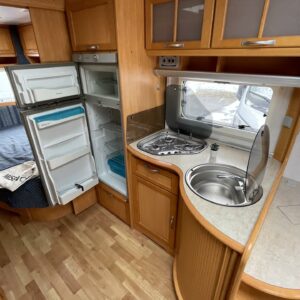 Alde, Special wheels, Fridge, Cassette WC, Cassette blinds, Roof hatch, Floor heating, Stove, Hot water boiler, Fluid circulation heating, Freezer compartment, Double bed, Sink, Electric heating cartridge, TV-antenni tai lautasantenni, Support legs, Lattialämmitys (nestekierto), kwh-mittari, mover, ranskalainen vuode, jenkkijääkaappi
