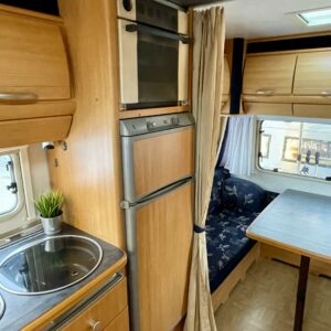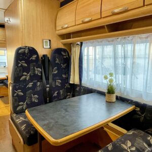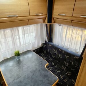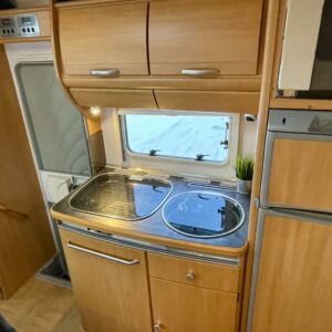 Alde, Insulated grey water tank, Fridge, Gas oven, Cassette WC, Cassette blinds, Roof hatch, Central heating, Passenger area carpets, Stove, Hot water boiler, Sun shade, Fluid circulation heating, Power steering, Freezer compartment, Double bed, Sink, Bicycle rack, Radio, Shower, Electric heating cartridge, Electric steps, Turbo, Ilmastointi (ohjaamo), harmaavesisäiliön lämmitys, jenkkijääkaappi, Asuinosan hyttysovi/verho, Two tyre sets