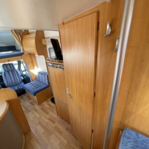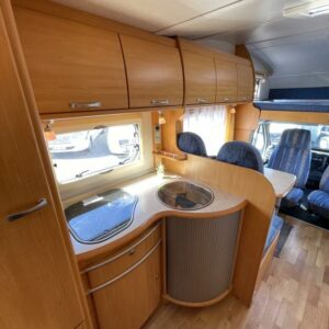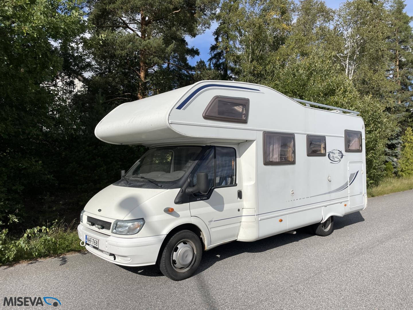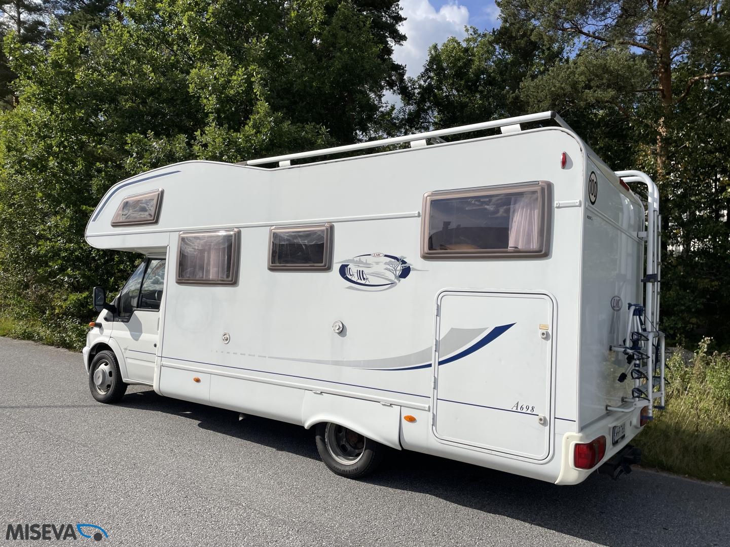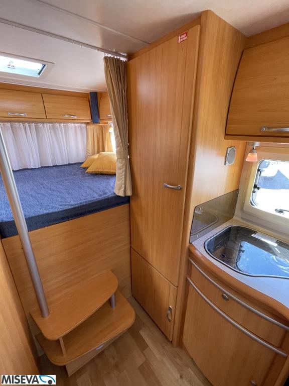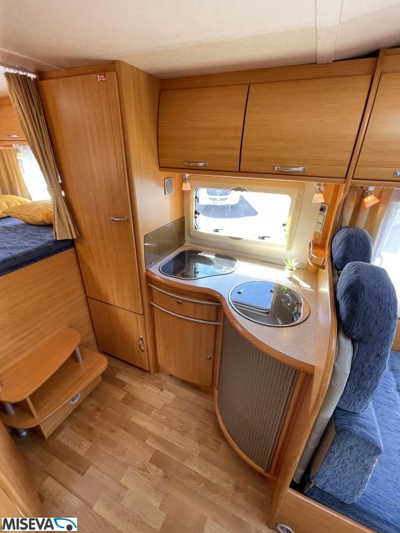 ABS brakes, Airbag, Fridge, Two tyre sets, Cassette WC, Kattokaiteet/tikaat, Roof hatch, Central heating, Stove, Hot water boiler, Sun shade, Power steering, Freezer compartment, Double bed, Sink, Bicycle rack, Electric windows, Power side mirrors, Trumatic, Towing hook, CD-Radio
