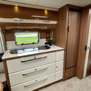 Alde, Special wheels, Cassette blinds, Cassette WC, Fridge, Roof hatch, Floor heating, Passenger area carpets, Stove, Hot water boiler, Sun shade, Sink, Double bed, Freezer compartment, Fluid circulation heating, Shower, Electric heating cartridge, Support legs, TV-antenni tai lautasantenni, Bicycle rack, Solar panel, CD-soitin