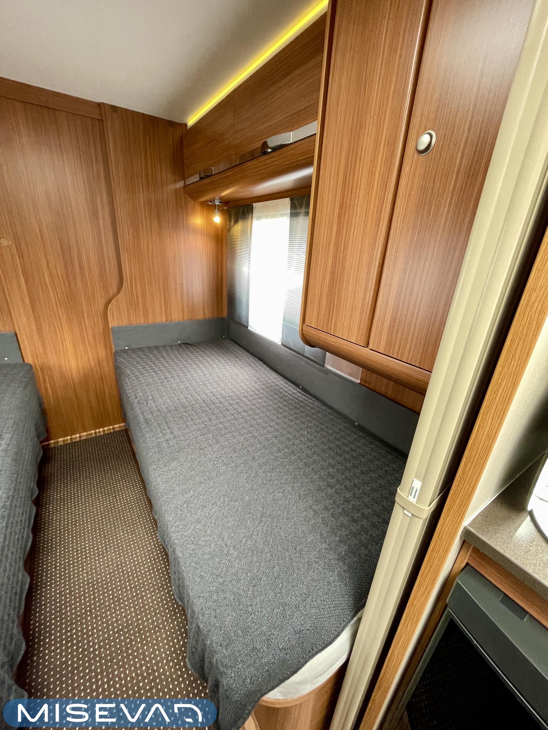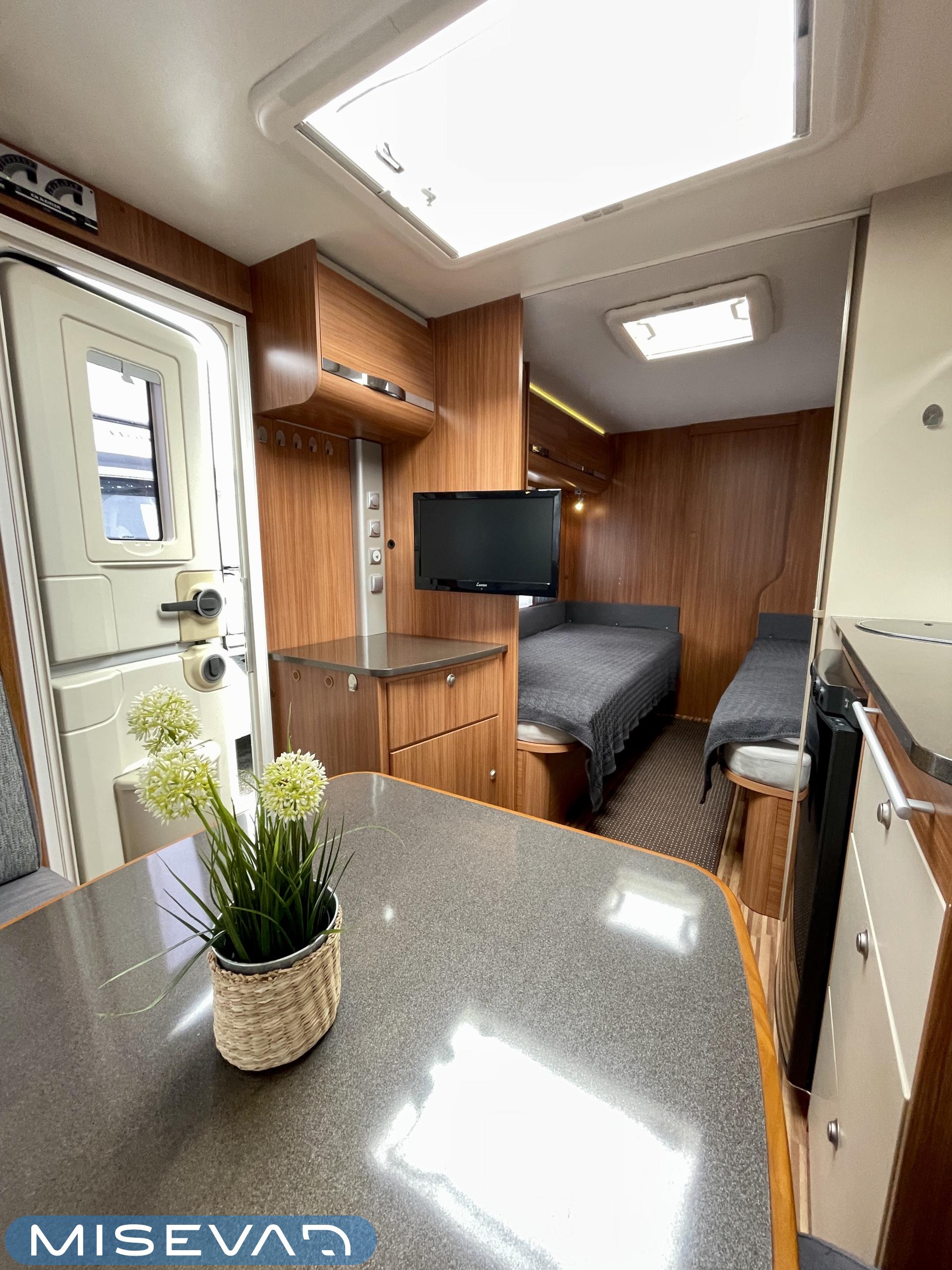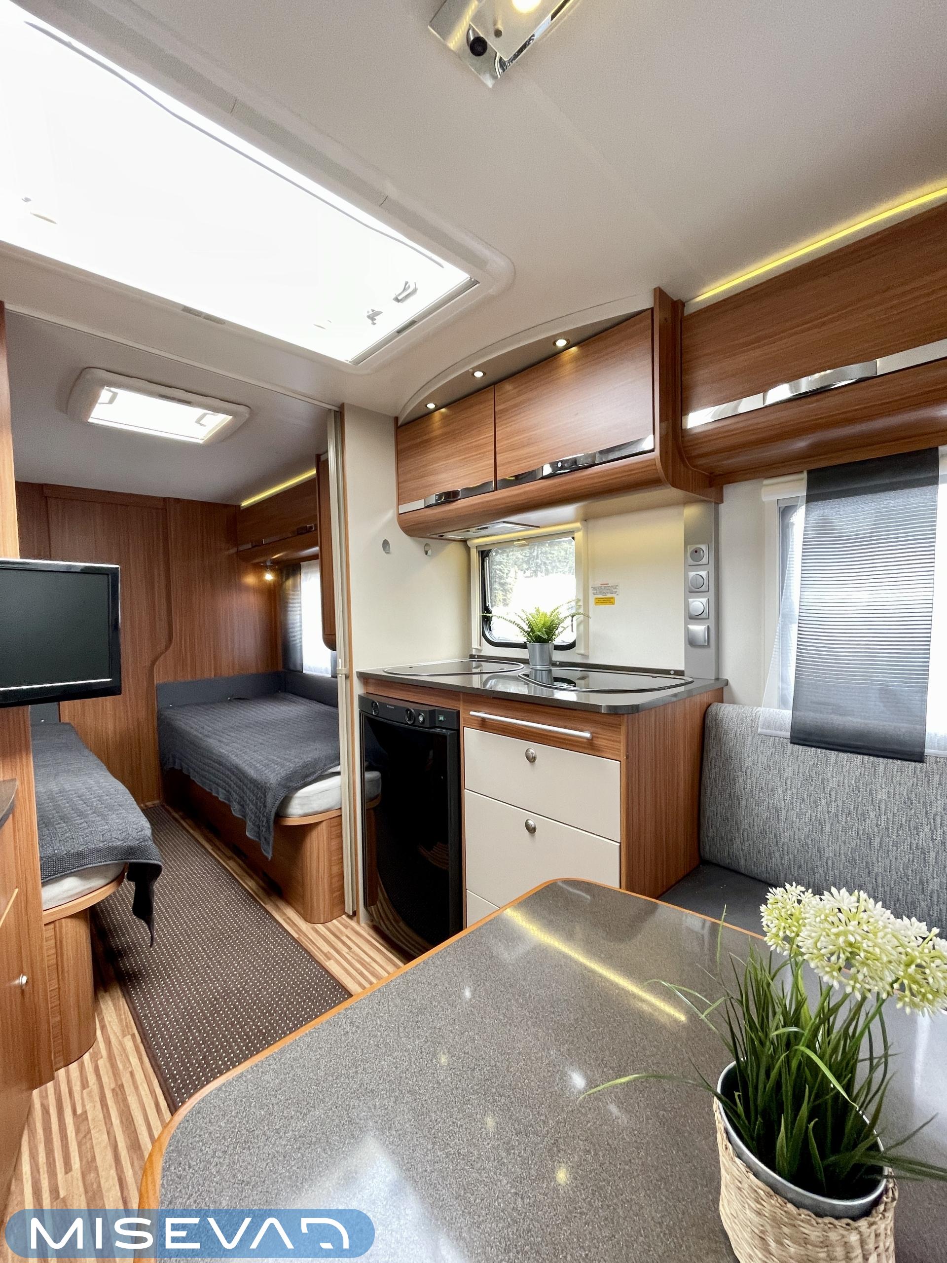 Solar panel, Separate beds, Fridge, Cassette WC, Cassette blinds, Roof hatch, Passenger area carpets, Stove, Hot water boiler, Mover, Fluid circulation heating, Freezer compartment, Sink, TV-antenni tai lautasantenni, Support legs, Alde, Lattialämmitys (nestekierto), Kesärenkaat, Tupla-akut, kwh-mittari, Insulated grey water tank, liesituuletin, pullonvaihtaja, kaasun ulosotto, sähkön ulosotto, televisioteline, Asuinosan hyttysovi/verho