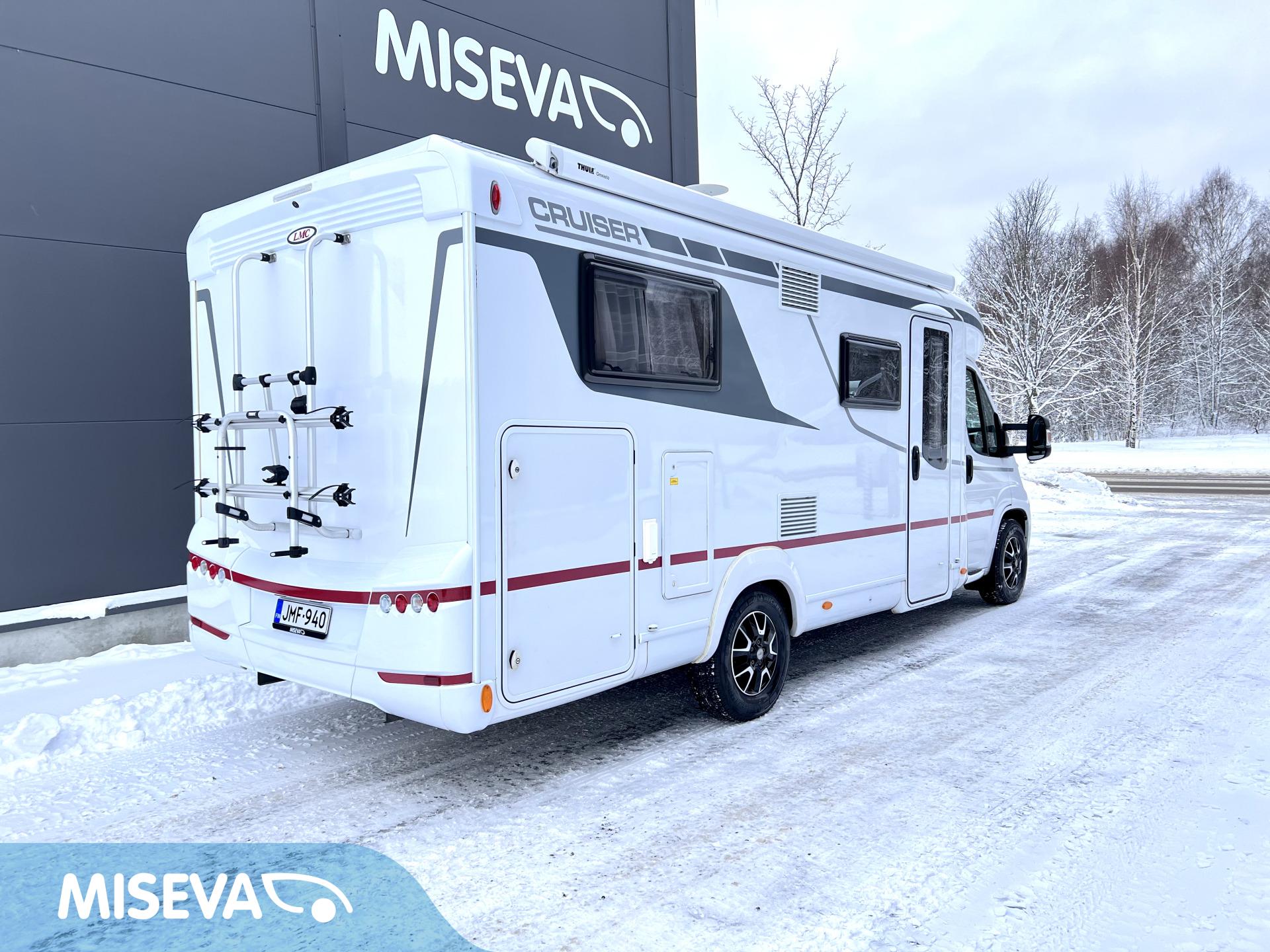 ABS brakes, Alde, Bluetooth, Special wheels, Separate beds, Ilmastointi: Automaattinen, Fridge, Cassette WC, Cassette blinds, Roof hatch, Keskuslukitus: Kaukosäätöinen, Floor heating, Passenger area carpets, Stove, Hot water boiler, Sun shade, Navigator, Fluid circulation heating, Freezer compartment, Sink, Pysäköintikamera, Bicycle rack, Radio, Shower, Electric windows, Electric heating cartridge, Power side mirrors, TV-antenni tai lautasantenni, Turbo, Vakionopeudensäädin, Kesärenkaat, Alde ohjaamon nestekiertoinen matto, ohjaamon kasettiverhot, Multimedialaite (sis. p-kamera, navi, Player, bluetooth, handsfree)