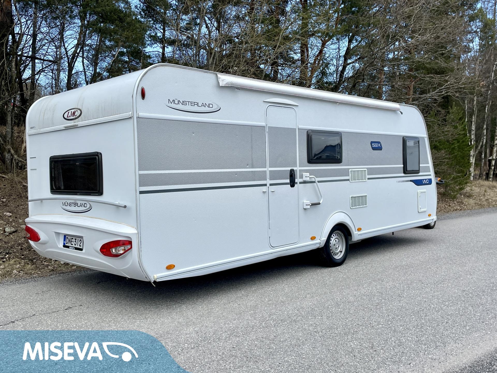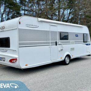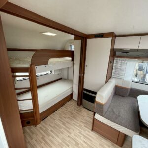 Solar panel, Fridge, Cassette WC, Cassette blinds, Roof hatch, Bunk bed, Floor heating, Passenger area carpets, Stove, Hot water boiler, Sun shade, Freezer compartment, Double bed, Sink, Electric heating cartridge, Trumatic, Support legs, Lattialämmitys (sähkö)