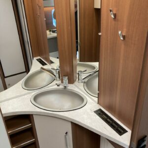 Alde, Special wheels, Insulated grey water tank, Fridge, Cassette WC, Cassette blinds, Roof hatch, Bunk bed, Floor heating, Stove, Hot water boiler, Leather interior, Fluid circulation heating, Freezer compartment, Double bed, Sink, Shower, Electric heating cartridge, Support legs, Asuinosan hyttysovi/verho, Tiiveystakuu voimassa, jenkkijääkaappi, pullonvaihtaja, kaasun ulosotto, televisioteline, Lattialämmitys (nestekierto), Sun shade