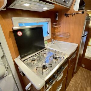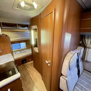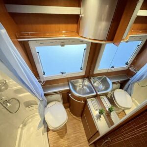 Trip computer, ABS brakes, Airbag, Air conditioning aut., Fridge, Cassette WC, Cassette blinds, Roof hatch, Central locking with remote, Central heating, Ignition interlock, Stove, Traction control, Hot water boiler, Sun shade, Freezer compartment, Double bed, Parking sensor/camera, Sink, Fuel-operated additional heater, Shower, Electric windows, Power side mirrors, Trumatic, Turbo, TV antenna/satellite dish, Cruise control