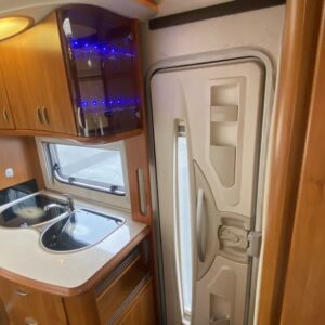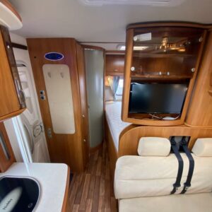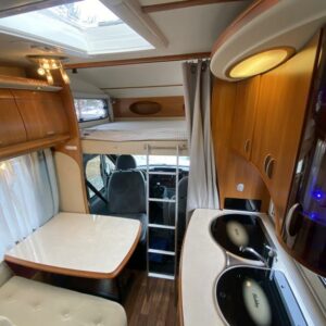 Trip computer, ABS brakes, Airbag, ESC, Cab air conditioning, Air conditioning man., Fridge, Two tyre sets, Cassette WC, Cassette blinds, Roof hatch, Central locking with remote, Central heating, Stove, Traction control, Hot water boiler, Power steering, Freezer compartment, Double bed, Parking sensor/camera, Sink, Stereo system, Shower, Electric windows, Electric heating cartridge, Power side mirrors, Electric steps, Trumatic, Turbo, TV antenna/satellite dish, Cruise control