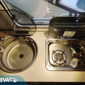 Fridge, Cassette WC, Roof hatch, Floor heating, Freezer compartment, Bicycle rack, Rear kitchen, Trumatic, Support legs