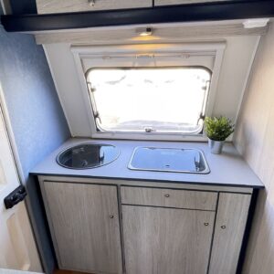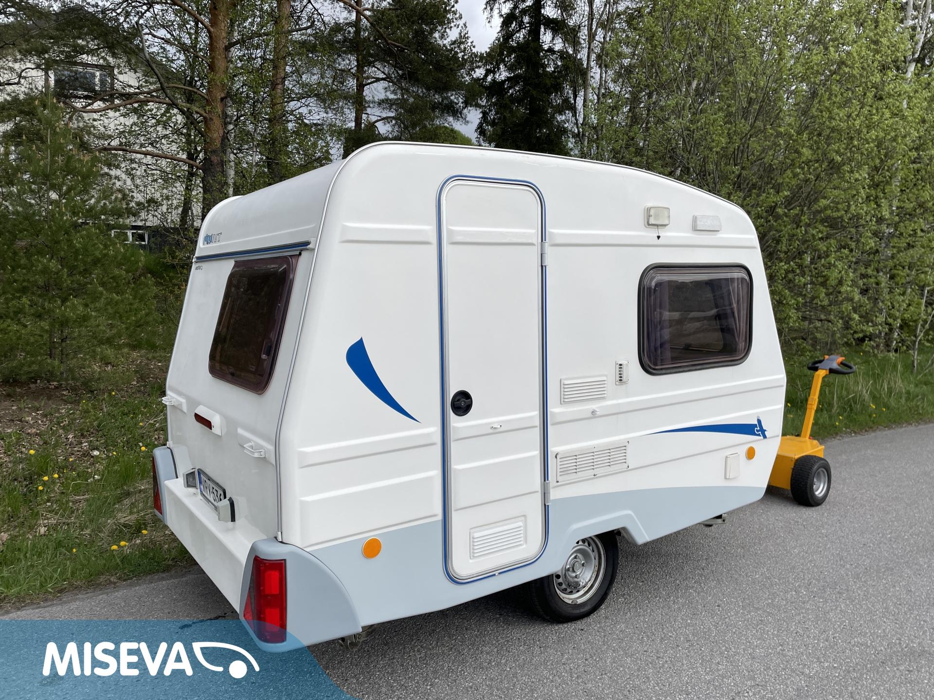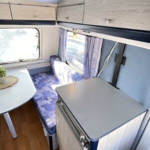 Fridge, Cassette WC, Roof hatch, Stove, Sink, Rear kitchen, Support legs, Lattialämmitys (sähkö), Trumatic