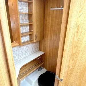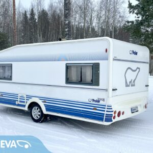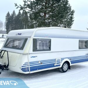 Separate beds, Fridge, Cassette WC, Cassette blinds, Roof hatch, Stove, Hot water boiler, Fluid circulation heating, Sink, Bicycle rack, Electric heating cartridge, Support legs, Lattialämmitys (nestekierto), Kesärenkaat