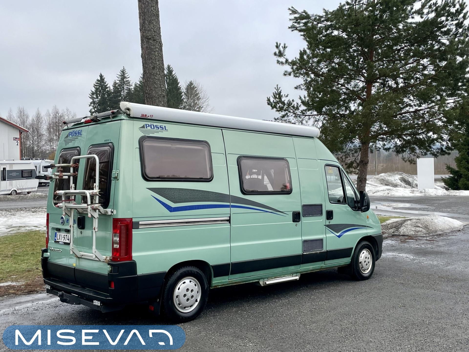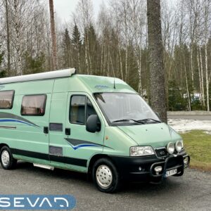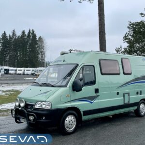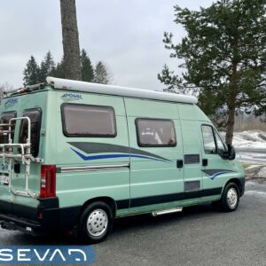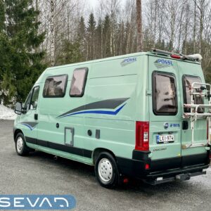 Two tyre sets, Bicycle rack, Poikittainen parivuode, Sun shade, Stove, Roof hatch, Kasetti- WC, Fridge, Cab air conditioning, Power steering, Sink, Radio, Interior plug, Towing hook, Polttoainlämmitys(asuintila), 2 (ok) renkaat, Kesärenkaat, Talvirenkaat(nasta), kwh-mittari, Peruutuskamera